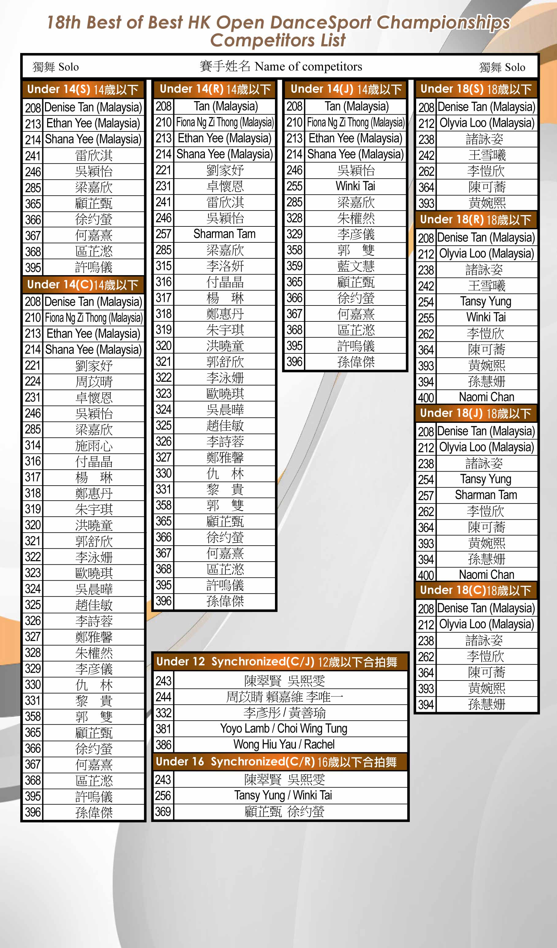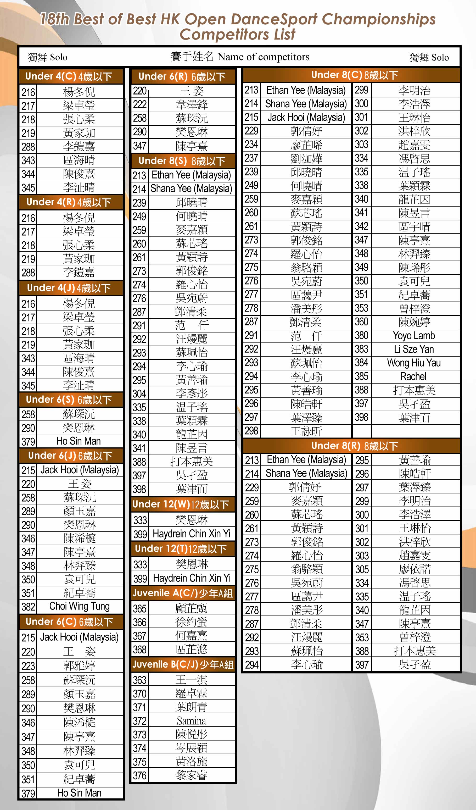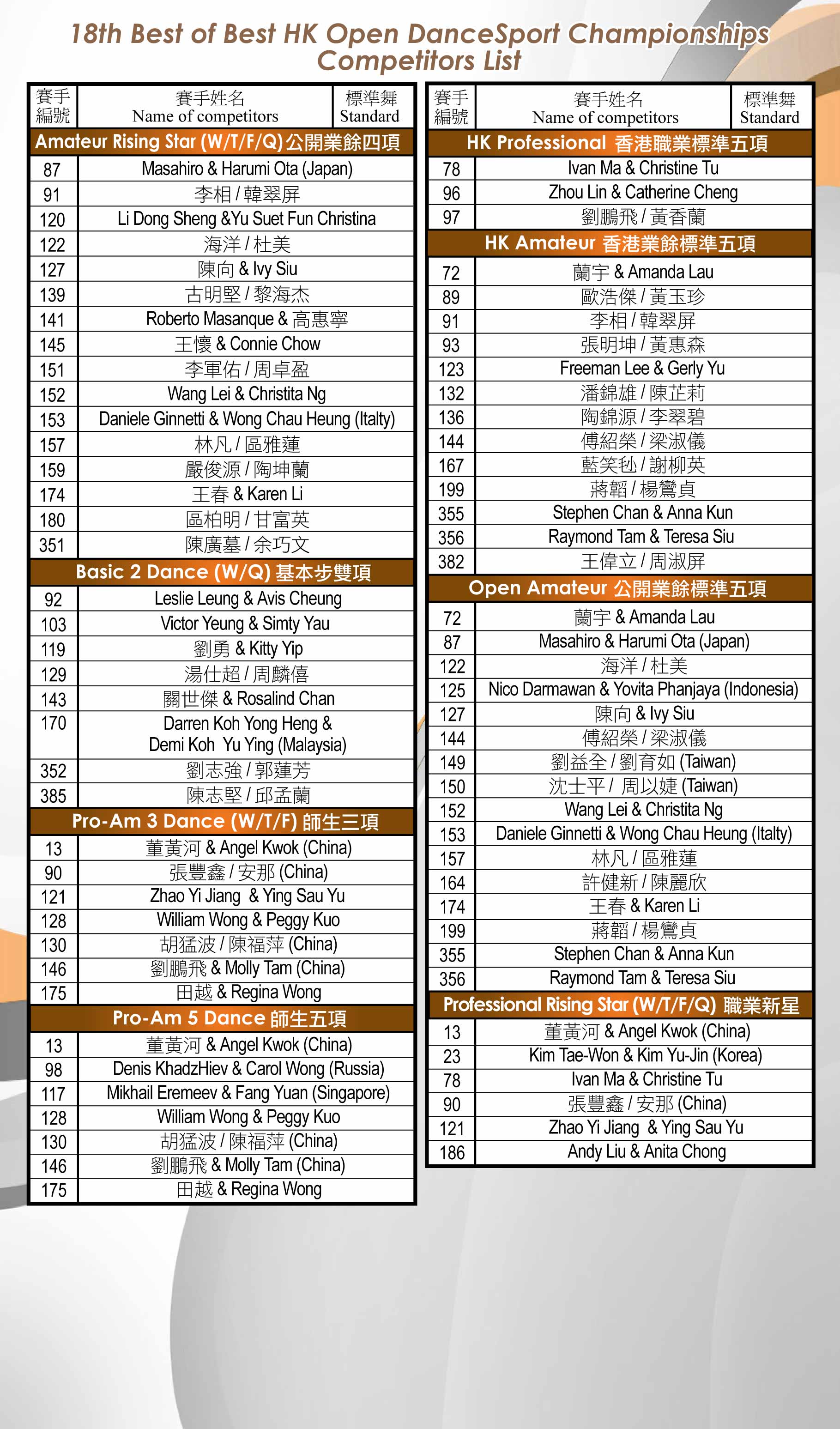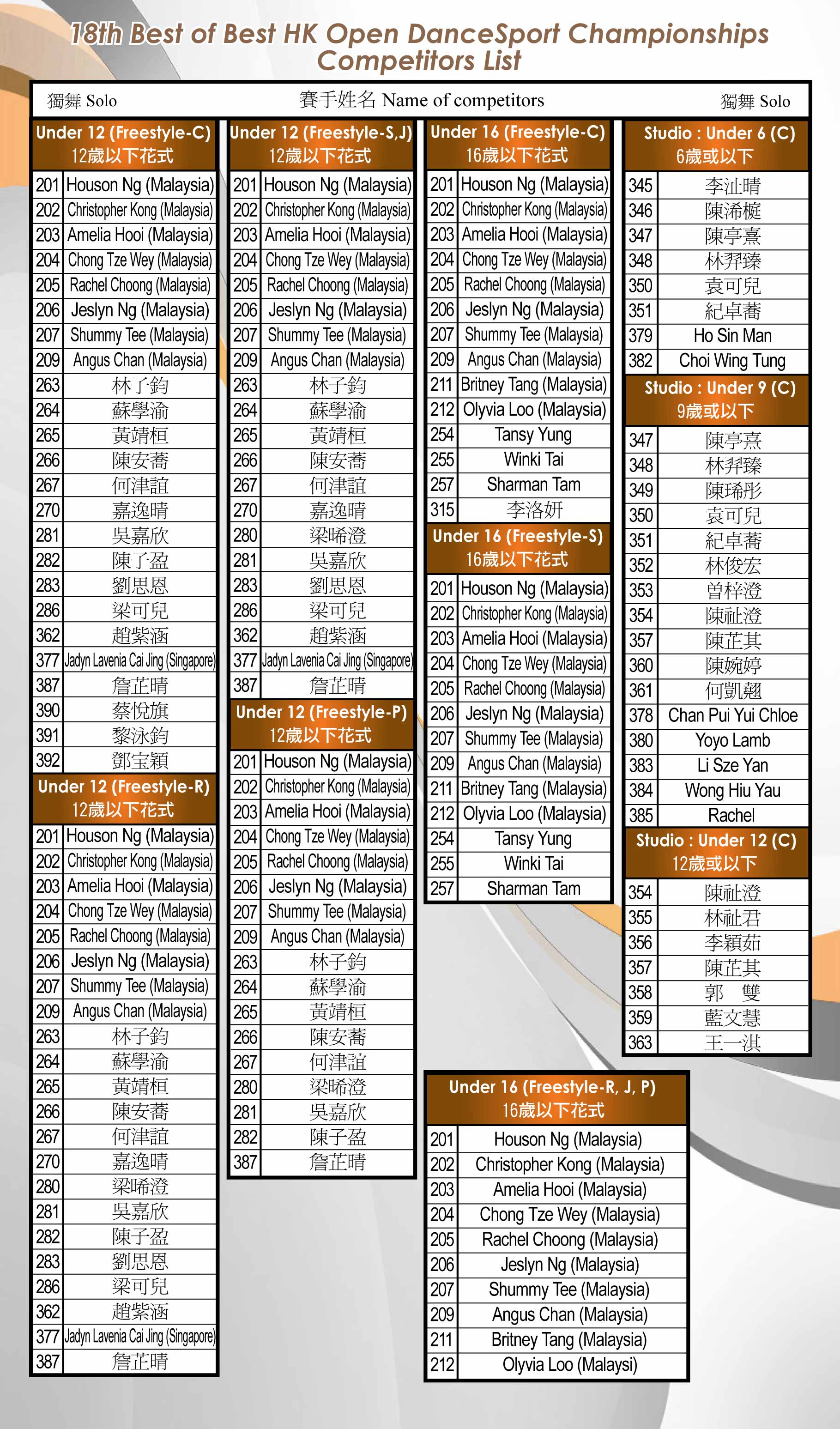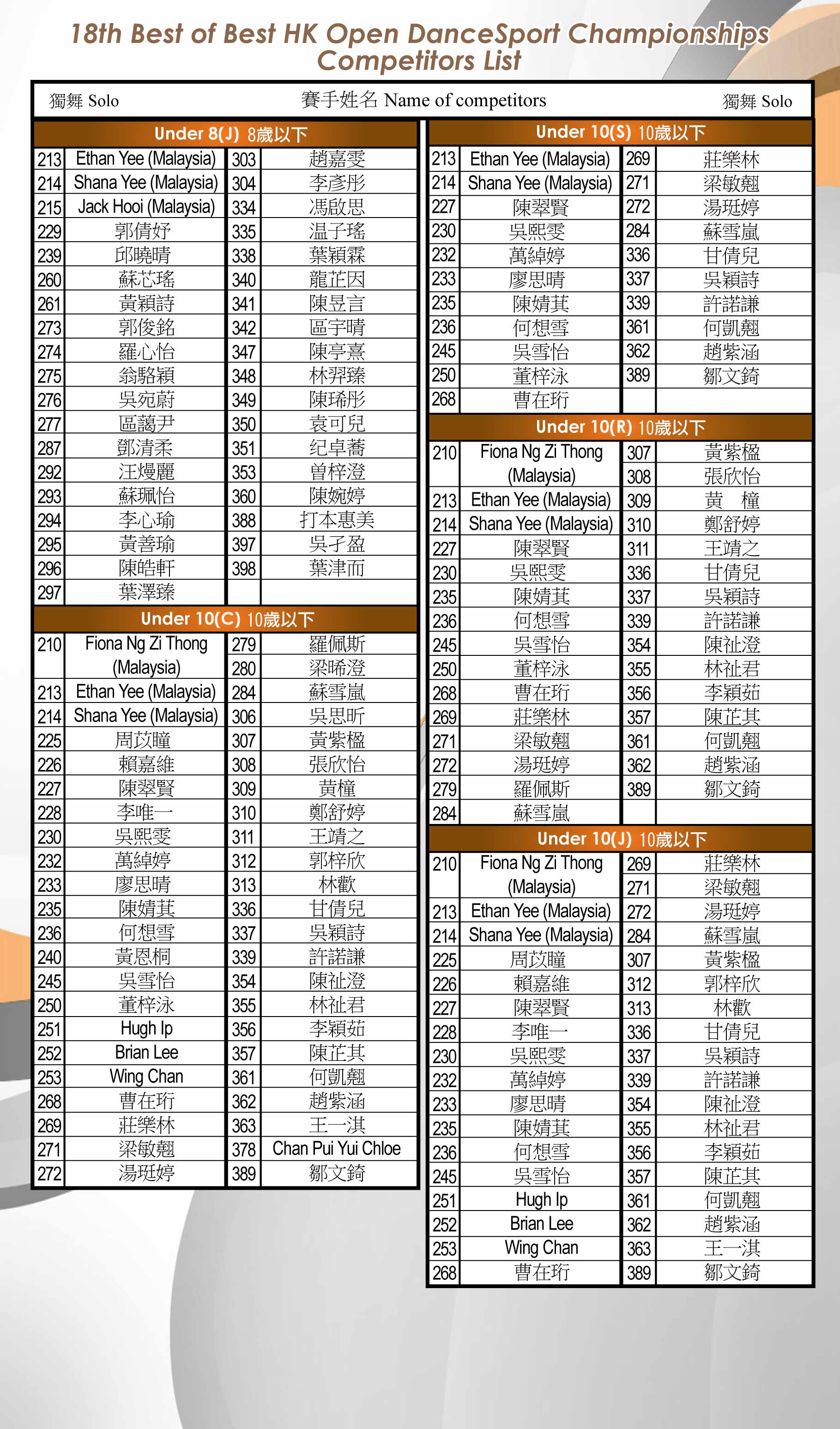 第十八屆香港公開精英錦標賽 18th Best of Best HK Open Championships