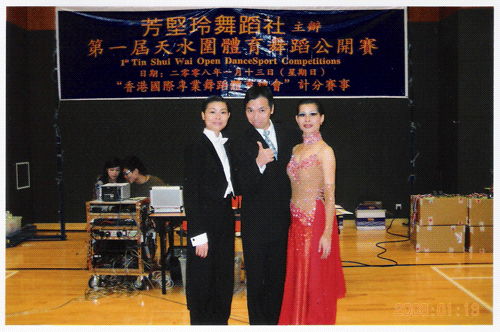 二零零八年一月十三日被芳堅玲舞蹈社誠意邀請統籌主辦第一屆"天水圍體育舞蹈公開賽", 碰正香港體舞盟在同日舉行比賽, 這次的經歷令我感到多年來盡心盡力為本會賽手出力的心血沒有白費, 因為大部份本會賽手都不辭勞苦先跳完天水圍的賽事, 再趕往大角咀参加舞盟的比賽, 祇有三、兩對本會賽手選擇参加舞盟的比賽, 沒有往天水圍, 本人跟舞盟的葉會長亦惺惺相惜, 各自盡量安排時間賽程務求令風塵僕僕兩邊賽的賽手能夠達成心願, 完成兩邊賽事。