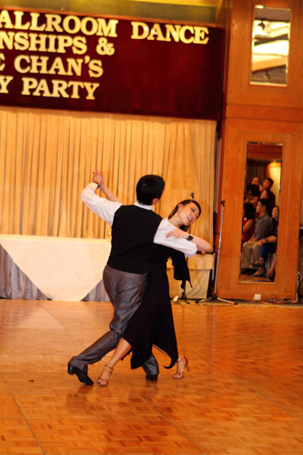 Although another competition clashed on the same day in HK, the number of entries were similar as last year's ISTD cup. Couples representing Italy (Joshua & Sara), Singapore, Thailand, Philippines, Macau, China were in attendance to support this event. A new event of Studio Senior Latin was first introduced in the history of HK DanceSport competitions. Open Professional Standard was the last event in the afternoon session. Erie Perez Dela Cruz & Nardrudee Bothaworn from the turmoiling Thailand took the title. With the same format of last year, Open Professional Latin Final was held in the prime time of the evening Dinner Party. Joshua & Sara offered two Honour Dances to cheer my Birthday! Birthday cake cutting ceremony was held immediate after the Honour Dances. Thereafter came a Prize-Giving Game prepared by Gertrude & myself. We danced 16 Bars of Basic Waltz and Cha Cha Cha. The guest at scene who participated our game and named the Basic Figures shown by us with most names correct could take the prize home. Eventually two participants, both competitors, were emerged dual winners!