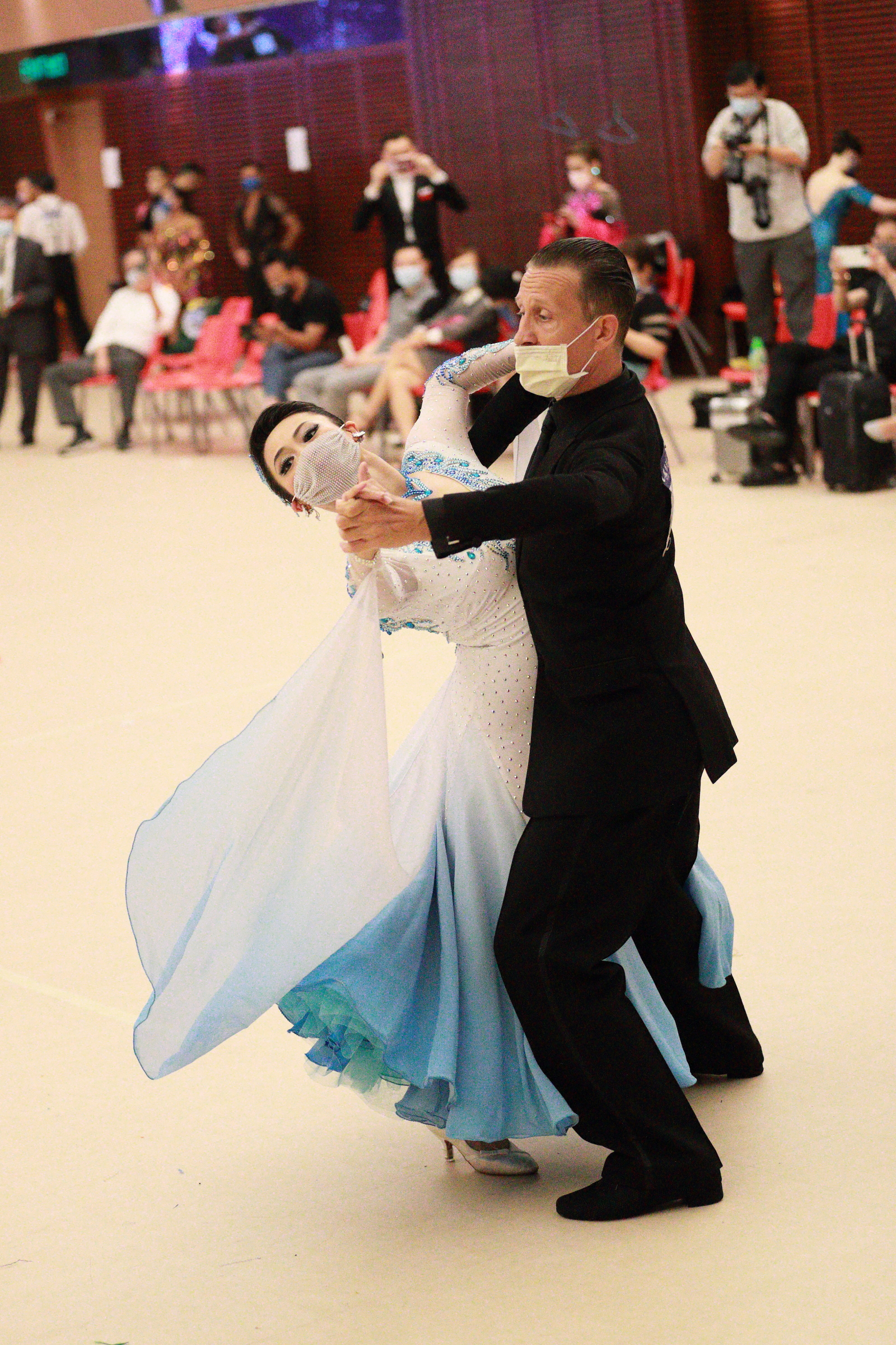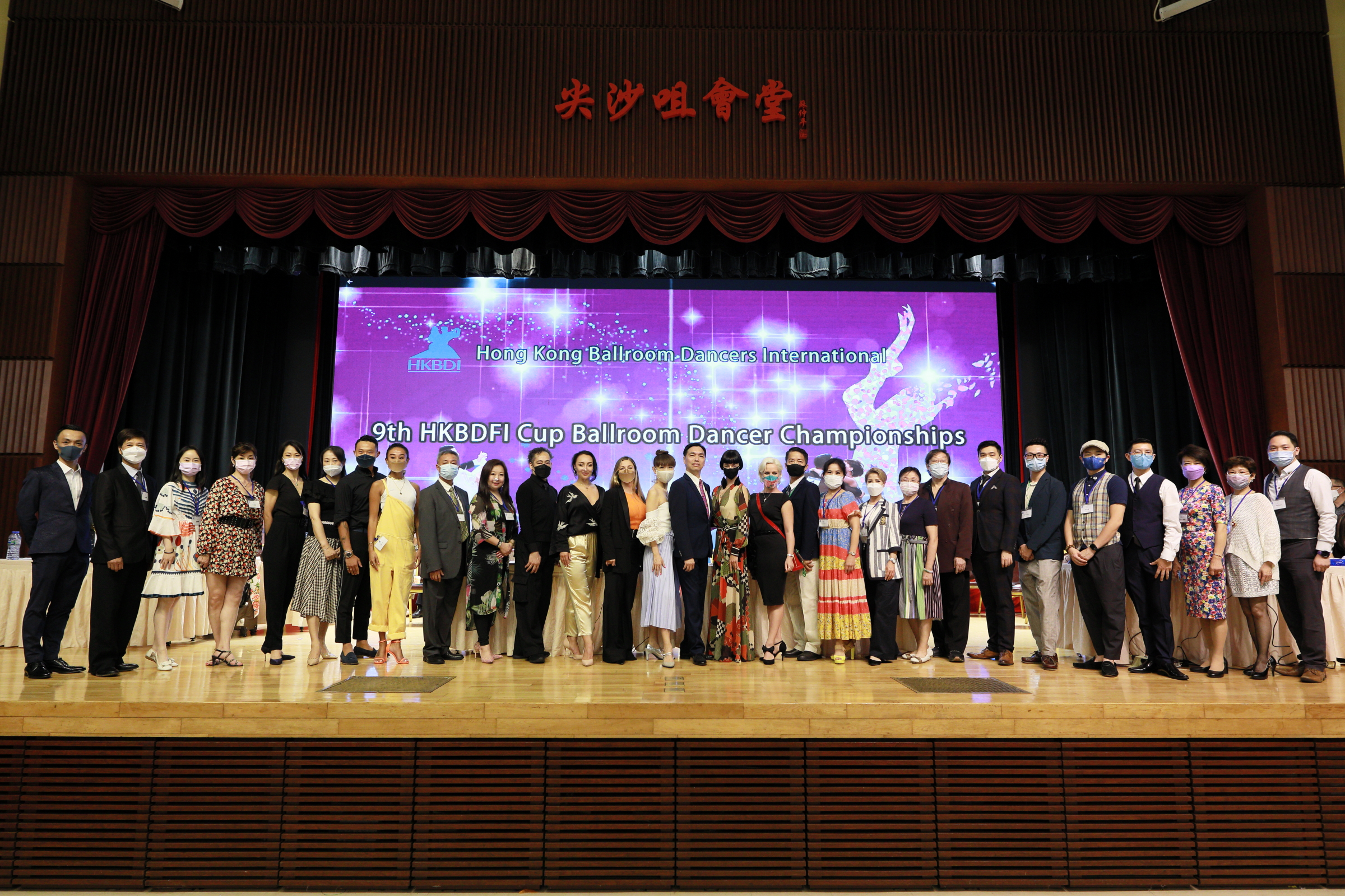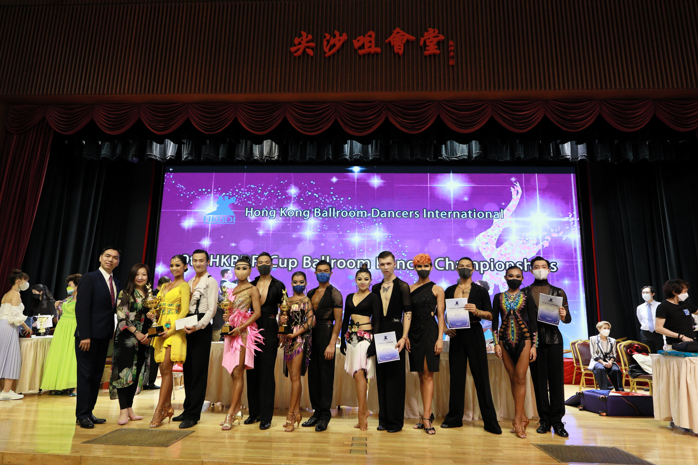 The 9th HKBDFI Cup Ballroom Dance Championships was originally organized on 29/3/2020. Due to COVID-19 restrictions, I was forced to postpone this event five times to 14/6/20, 6/9/20, 22/11/20, 14/3/21 and eventually & luckily it was actually held on 19th May 2021. Under HKSAR Government restrictions, all competitors had to wear their masks to dance. I wrote to the Health Department explaining that DanceSport was proved to be a highly exhausting & demanding sports. To wear mask during DanceSport competition may cause hazardous effects on athlete dancers. Still my request was not approved. Anyway that did not deter the hungry dancers to show their passions & talents in a normal setting competition in Hong Kong for more than one year! Record entry of 207 Solo dancers (49 categories) and slightly less than normal 66 couples (35 categories) registered for this very long awaited competition at the TsimShaTsui Kaifong Welfare Association Hall on the Day of Buddha Festival in HK.