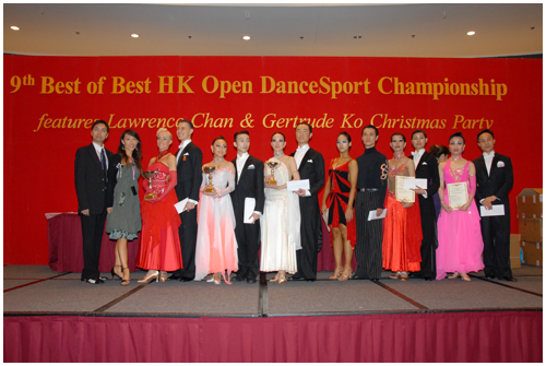 9th Best of Best HK Open DanceSport Championships resembled last year, once again produced a sparkling & delightful Christmas Day in Hong Kong Dancing Circle. Several major break-through were witnessed in the Championships on 25/12/07 : 1) nearly 150 couples were entered, which broke the previous eight years' records ; 2) with extra-ordinary fortune that two "Big Head" from two World-Renowned Teachers Associations in England –Mr David Roberts , Chief Secretary of United Kingdom Alliance (UKA) and Mr Richard Hunt, Vice-President of Imperial Society of Teachers of Dancing (ISTD), were acting as Chairman & Vice-Chairman of Adjudicators ; 3) Mr Graham Crookes, Vice-President of UKA was un-precedently invited to be the Scrutineer ; 4) couples from Lithuania and Finland competed in this event ; 5) Line Dancing competition was included. Other than the above two UK adjudicators, eight overseas adjudicators plus 19 local judges had put down their pens to produce 27 categories of Champions.